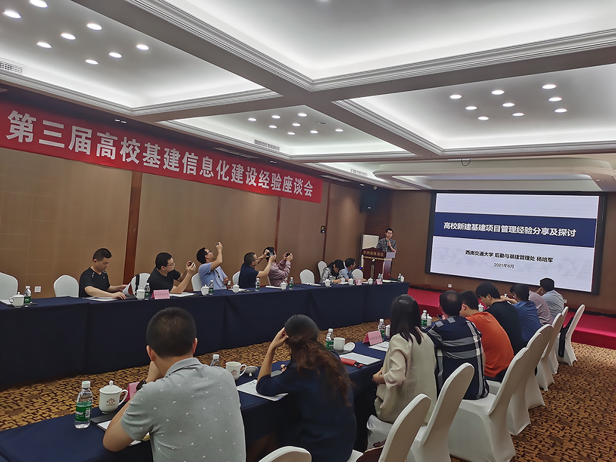 2021年6月3日,由北京邦永科技有限公司舉辦的第三屆高校基建信息化座談會(huì)在成都華納麗尊酒店圓滿召開。西南交通大學(xué)、西南財(cái)經(jīng)大學(xué)、西南科技大學(xué)、西南民族大學(xué)、重慶大學(xué)、西南石油大學(xué)、重慶科技學(xué)院、西華大學(xué)、四川師范大學(xué)和中西醫(yī)結(jié)合醫(yī)院等10多所高;ㄌ、審計(jì)室、規(guī)劃建設(shè)處和信息化辦公室負(fù)責(zé)人和專家代表共同參加了本次座談會(huì)。